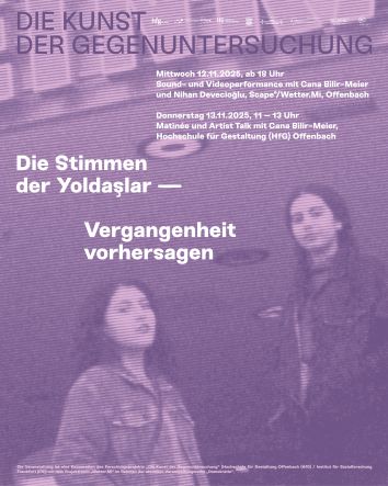 Vergangenheit vorhersagen. Zu tun was unmöglich scheint. Das Gegebene herausfordern. Rassistische Gewalt und Ausbeutung nicht als alternativlos hinnehmen, sondern ihr etwas entgegensetzen und an der Idee einer davon befreiten Gesellschaft festhalten. – Für diese scheinbare Unmöglichkeit bedarf es auf gesellschaftlicher wie auf künstlerischer Ebene widerständiger Verfahren und Gegenstrategien. Die Filme, Fotos, Performances und kollaborativen Arbeiten der Künstlerin Cana Bilir-Meier entwickeln solche ästhetischen Gegenverfahren. Eine Kooperationspartnerin ist dabei die Sängerin und Komponistin Nihan Devecioğlu. In ihrer kollaborativen, transmedialen Arbeit setzen sich die beiden performativ mit Erfahrungen intersektionaler Marginalisierung und Ausbeutung in der postmigrantischen Gesellschaft ebenso wie mit solidarischen Praxen des Widerstands dagegen auseinander. Dabei sind Musik und Sprache sowie wie das Experimentieren mit verschiedenen Formen des kollaborativen Arbeitens formgebend und inhaltlich bestimmend. Am 12. November gestalten die beiden einen performativen Sound- und Videoabend im Ausstellungsraum Scape°. Die an der Hochschule für Gestaltung (HfG) stattfindende Matinée am 13. November ist den vorwiegend filmischen Arbeiten von Cana Bilir-Meier gewidmet und stellt ihre recherchebasierte und autobiographisch gefärbte Arbeitsweise in den Mittelpunkt.